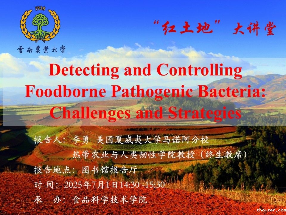 7月1日“红土地”大讲堂:Detecting and Controlling Foodborne Pathogenic Bacteria Challenges and strategies